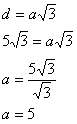 d = a√3. Foi fornecido que a medida da diagonal do cubo é 5√3, então: